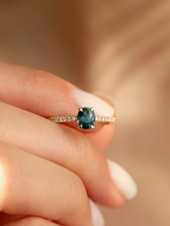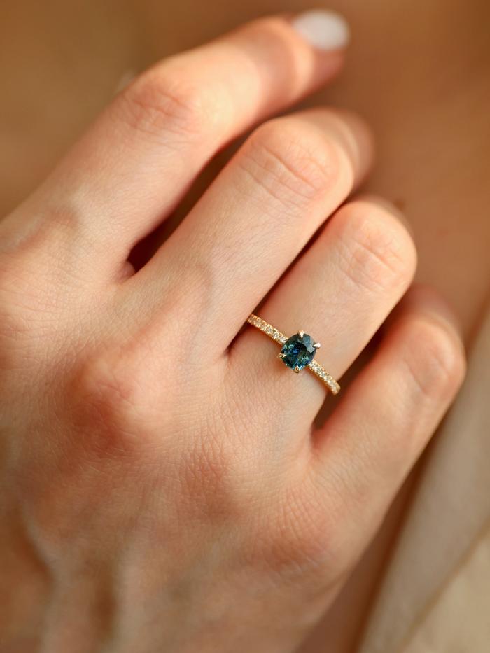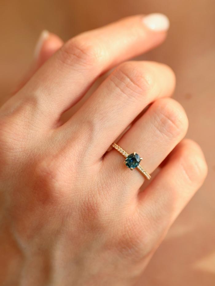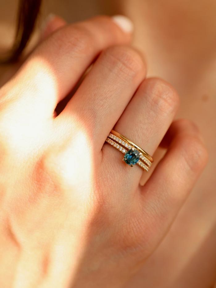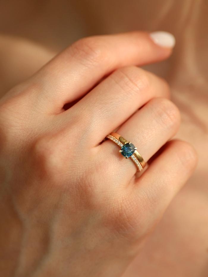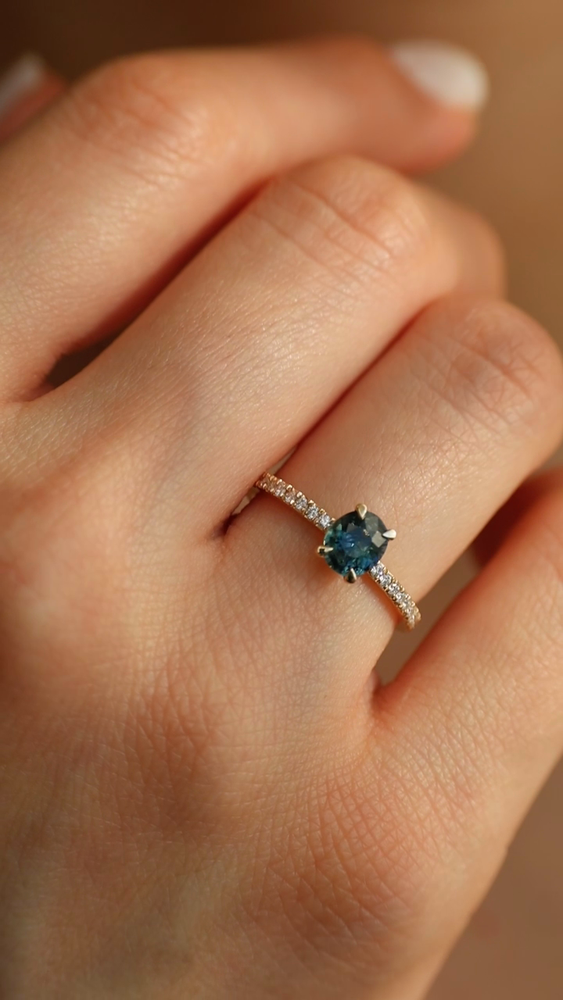 Whether chosen as a one-of-a-kind engagement ring or a personal heirloom of strength, Teal Whisper Sapphire & Pavé speaks to the woman who values depth over dazzle, meaning over noise.