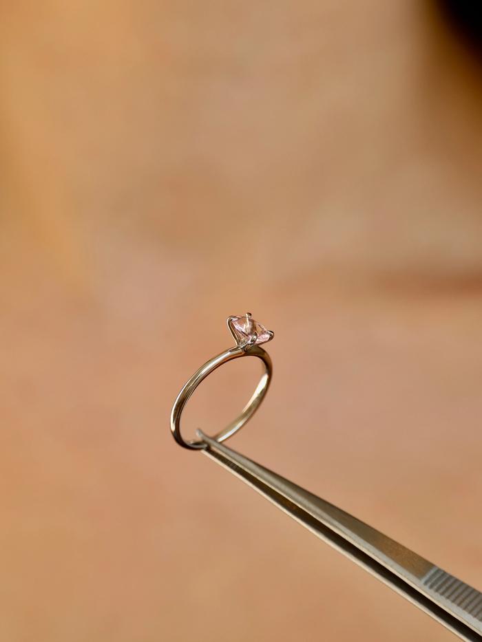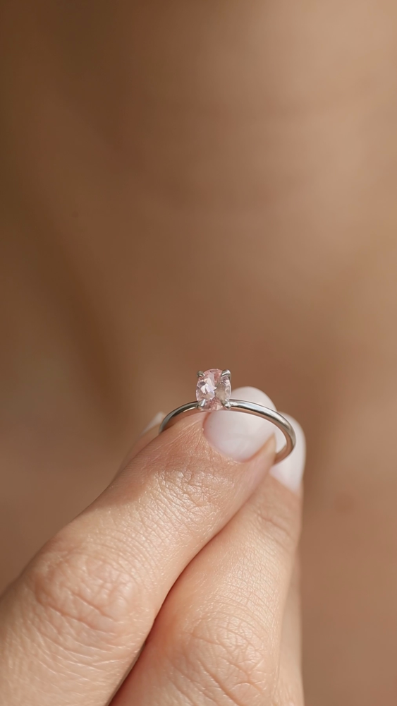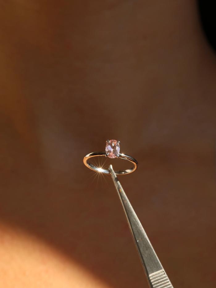 Pink Lotus Tourmaline, a delicate and luminous ring that captures the serene grace of the lotus â Sri Lankaâs national flower, and a symbol of beauty rising through stillness. The pink tourmaline glows with a gentle warmth, like morning light touching water.