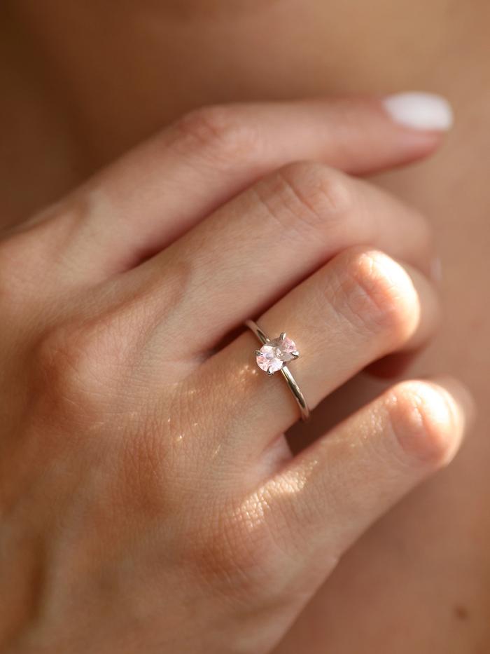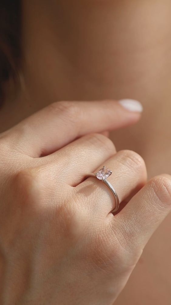 The white gold band is gently rounded and minimal, giving space for the gem to shine. The overall impression is light, feminine, and effortlessly elegant â like a petal floating on calm waters.