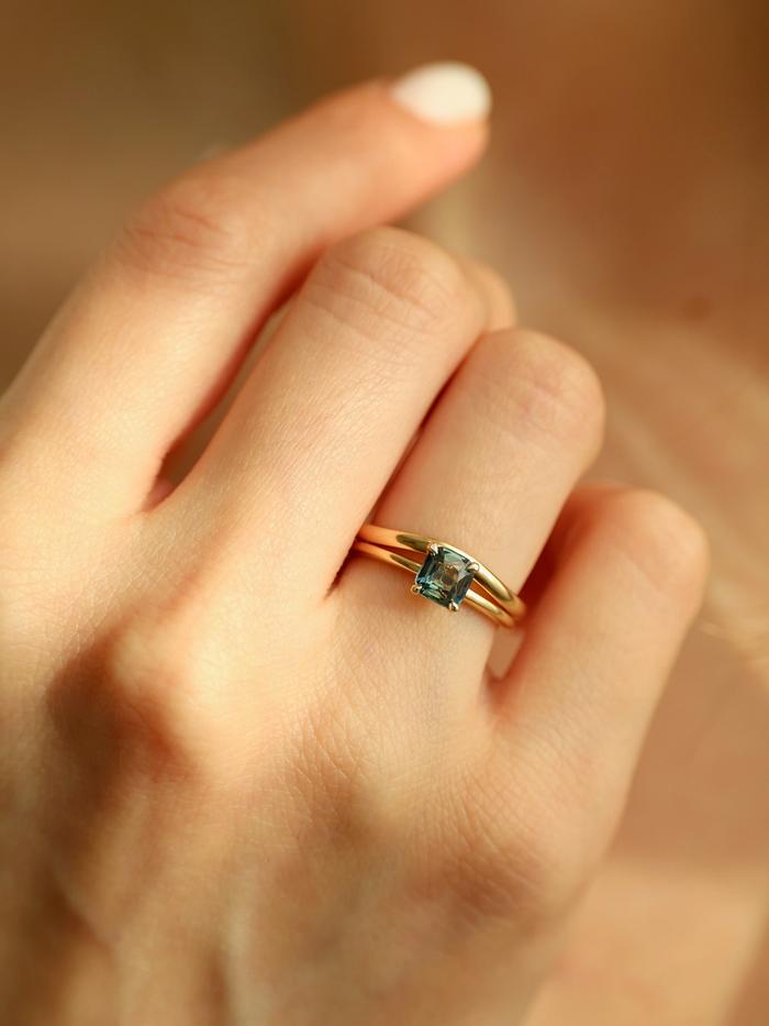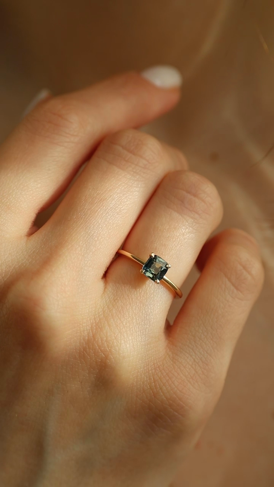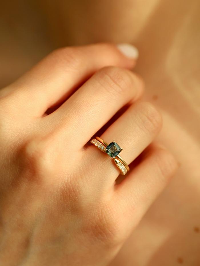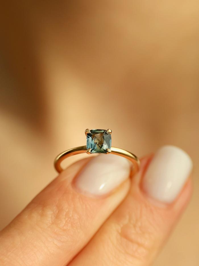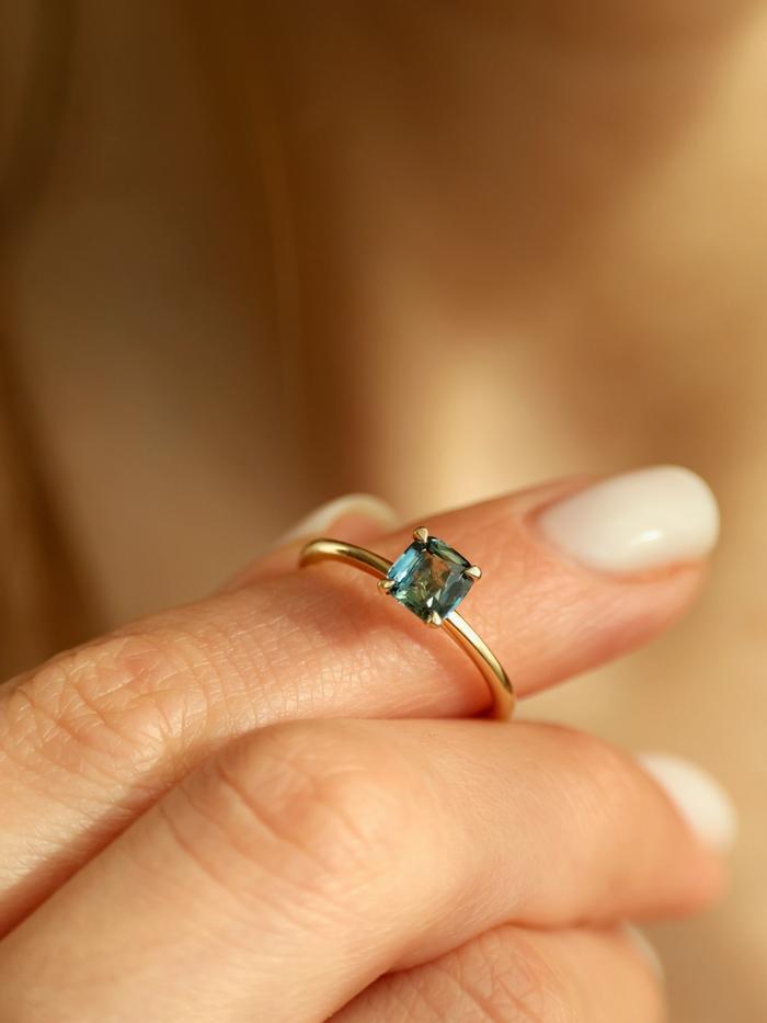 Forbered deg på å bli fullstendig betatt av den fortryllende skjønnheten til denne eksklusive ringen. I sentrum stråler en skinnende, blågrønn safir på 1,01 carat – en helt unik edelsten som vil ta pusten fra deg. Dette er ikke bare en ring, men et enestående kunstverk som vil sette et uforglemmelig preg på enhver anledning.