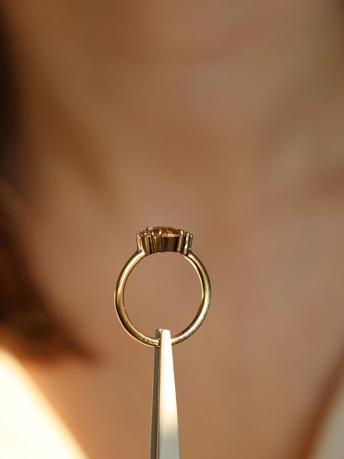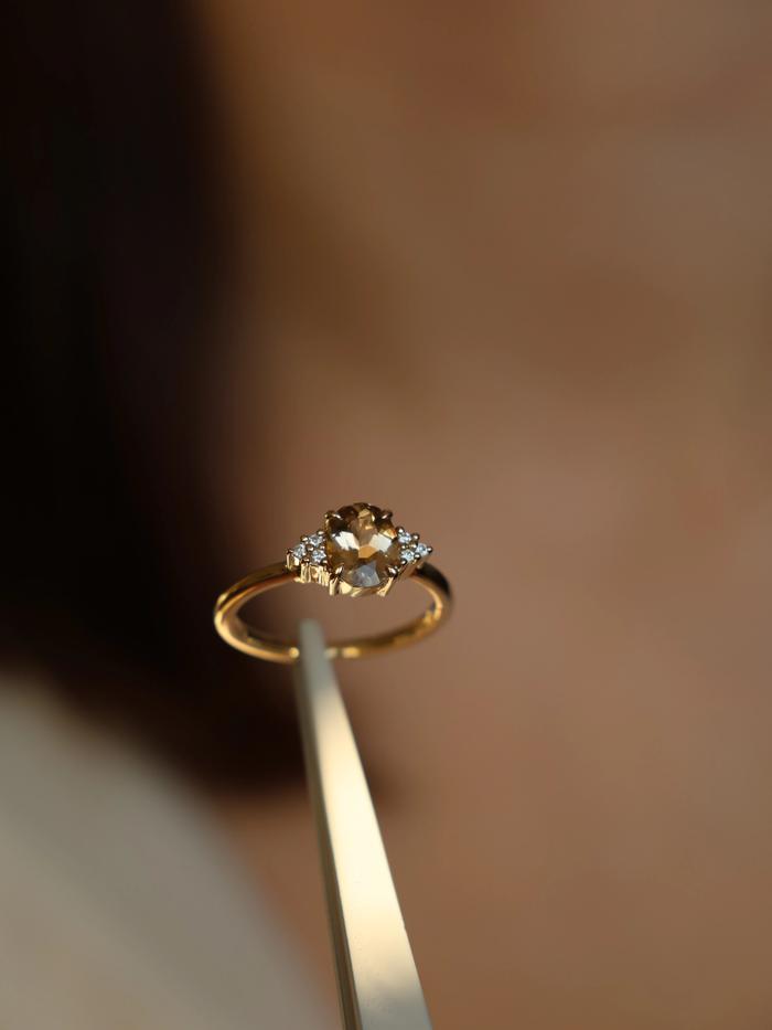 Golden Champagne Tourmaline & Diamonds is a quiet celebration of warmth, individuality and refined radiance. Whether chosen as an engagement ring or a personal symbol, it carries a rare beauty that never asks for attention, but always receives it.