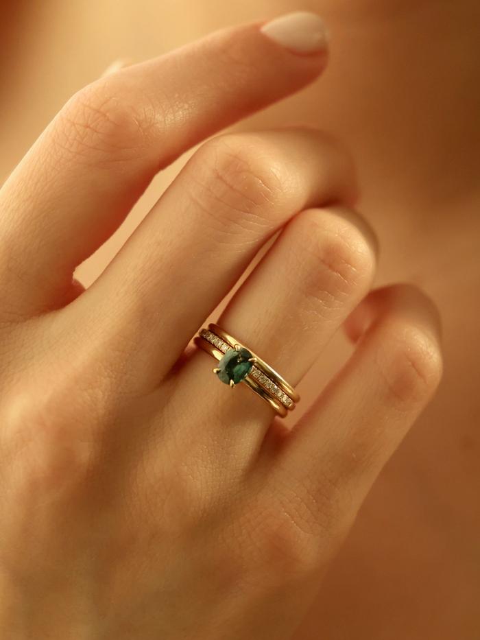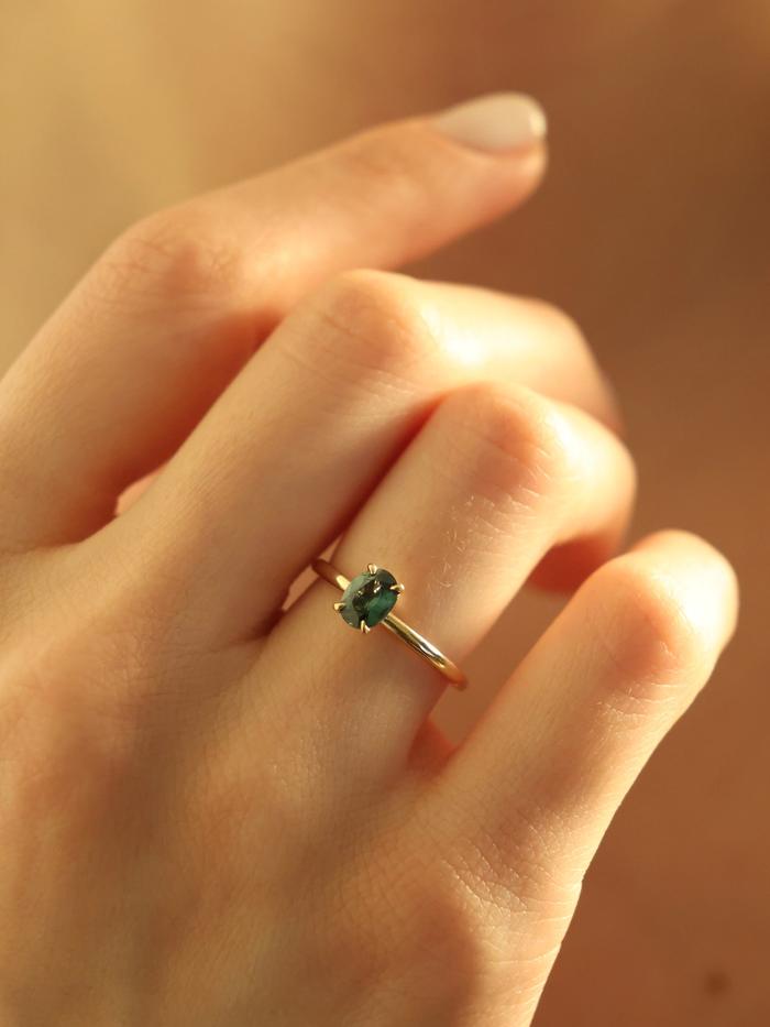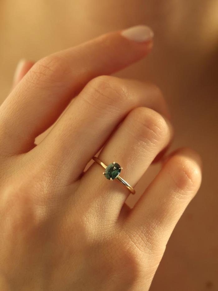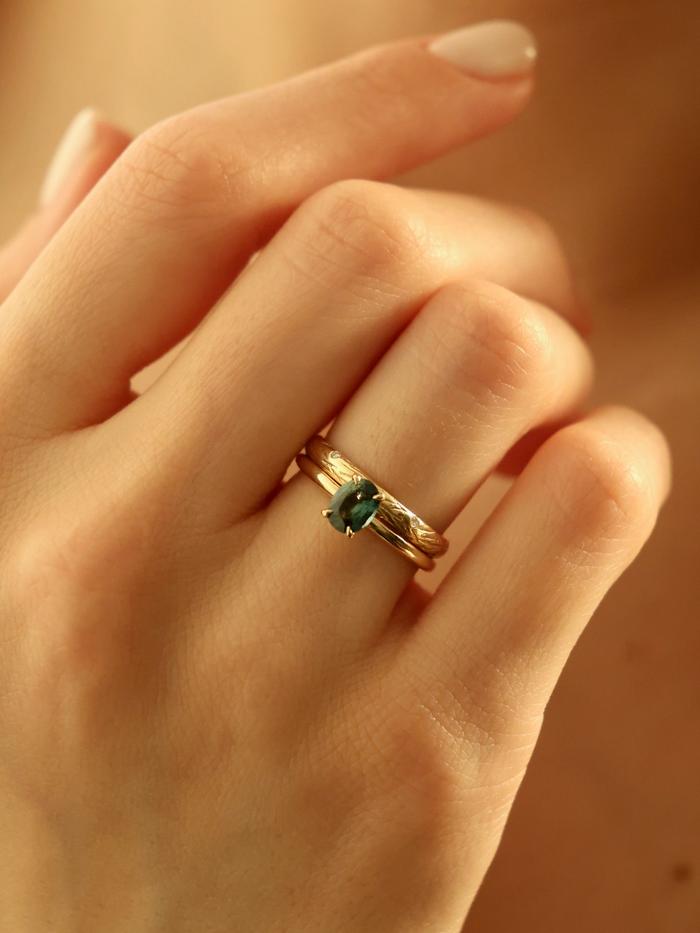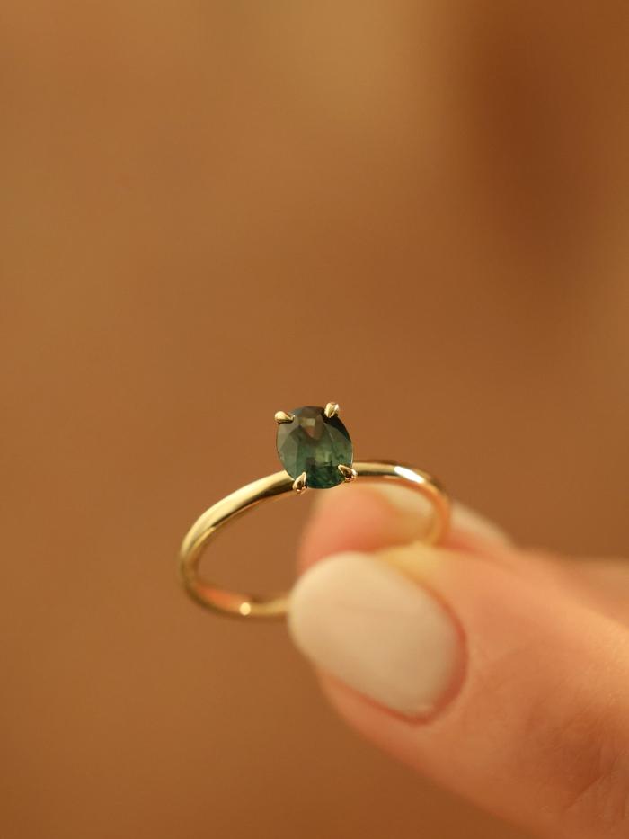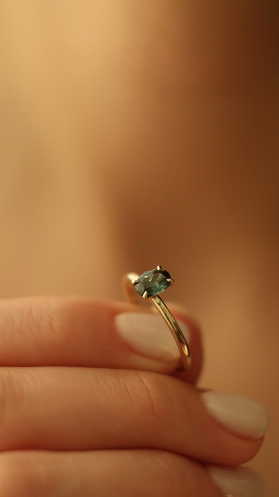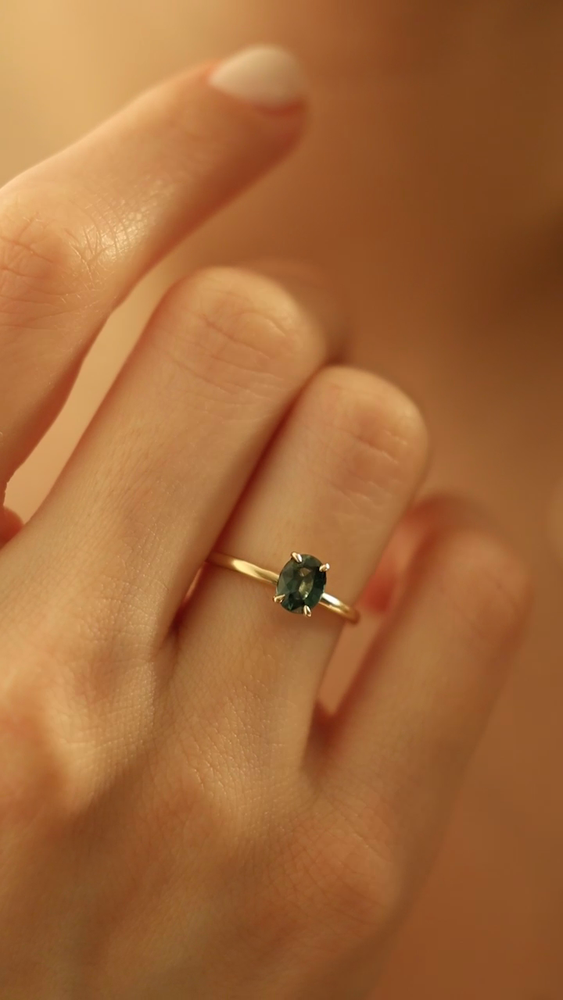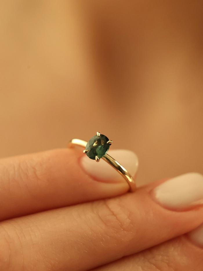 There’s a quiet magic in this ring — as if the soul of the forest lives within the sapphire. It shimmers between shadow and light, inviting you into its hidden depths. With every glance, it shifts: from deep jungle green to peacock blue, echoing the mystery of wild nature.